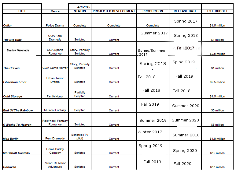 Slate of Current Projects